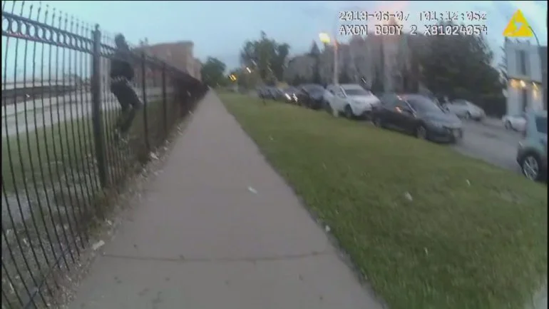From [HERE] and [HERE] Video released Wednesday shows a Chicago police tactical officer fatally shooting a 24-year-old man as he tried to scale a fence last month in the Bronzeville neighborhood.