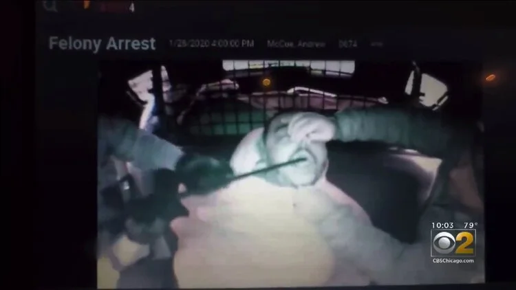 In video footage from a squad car camera obtained by WBBM-TV, a Joliet police sergeant, identified by the station as Doug May, is seen slapping Lurry's face while he was handcuffed in the back seat of the car. "Wake up, bitch," May says.