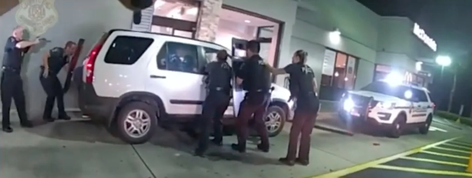 Jones showed segments of videos that captured the shooting from the perspective of an officer’s body camera and a body camera that officers had placed in a drive-thru window closer to LeRoux’s sport utility vehicle.