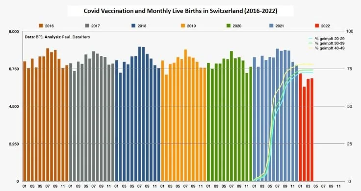 In Switzerland, birth rates have also plummeted since the introduction of the covid vaccines.